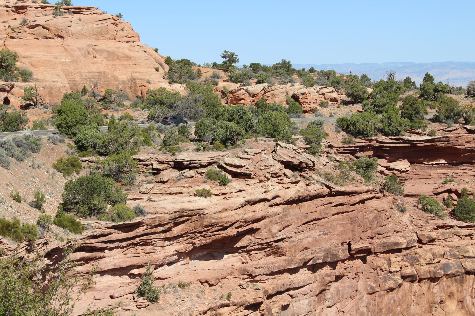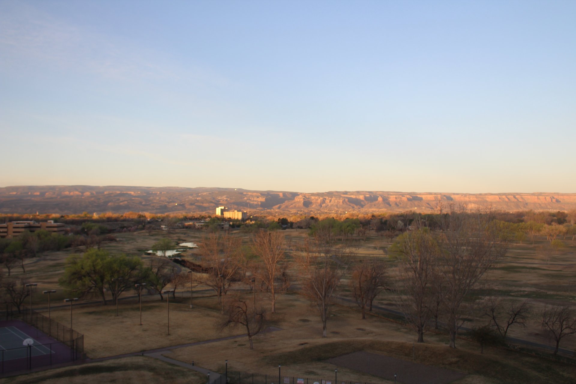 Up and at'em early today as we have a long day ahead of us. Looking out at the Colorado National Monument from our hotel room, it's along the ridge on the bluffs outside of town....