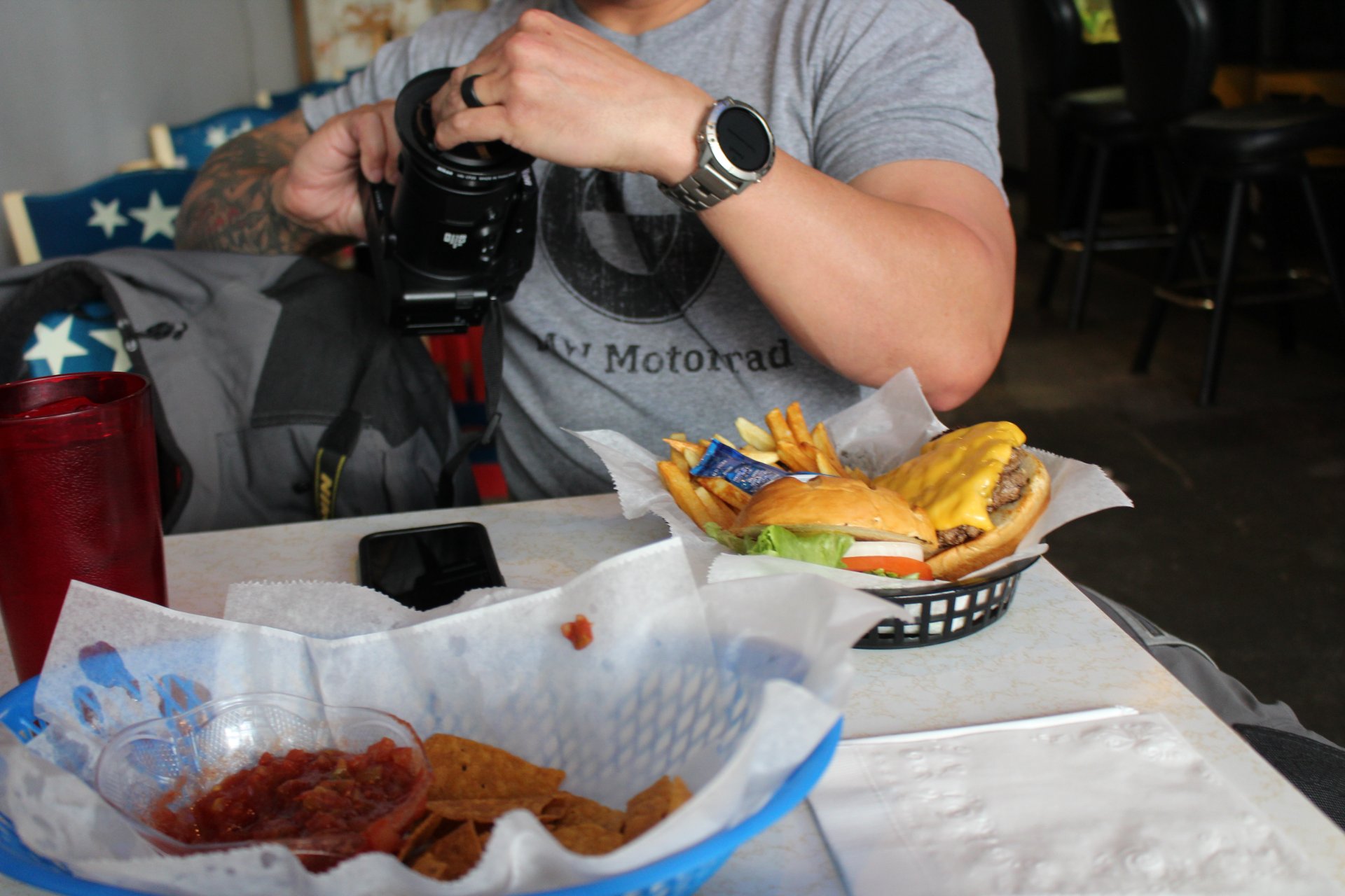 The food, although tainted with diesel and probably toxic, tasted pretty good. We had the cheeseburgers and fries with a side of chips and salsa.... (Food pics for @Pedro )