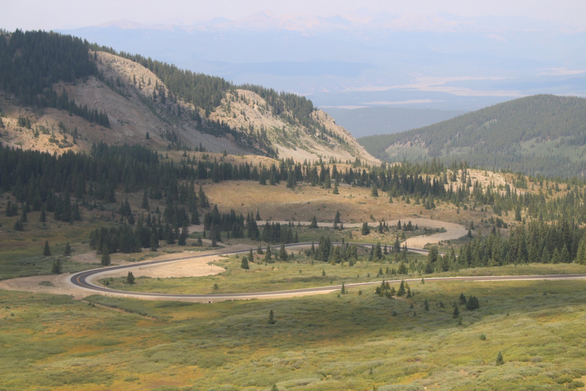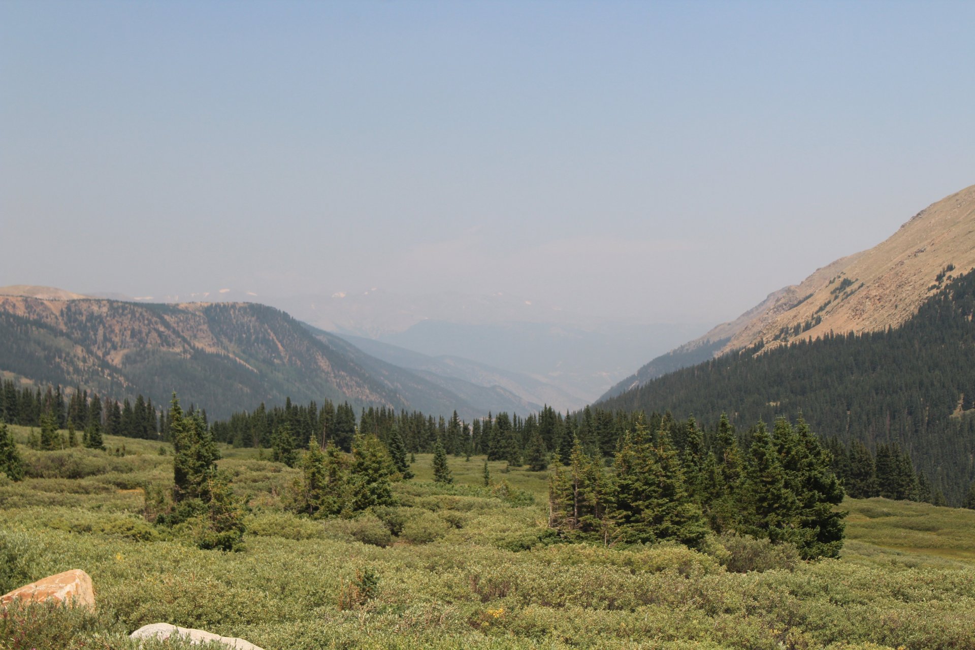 Colorado is blanketed in forest fire smoke this month. No rain, single digit humidity and high temperatures and making the forests rather dry. But this morning, the smoke looked thinner than usual so I set out on a ride to the ghost town of Tin Cup. Can almost see the hills...