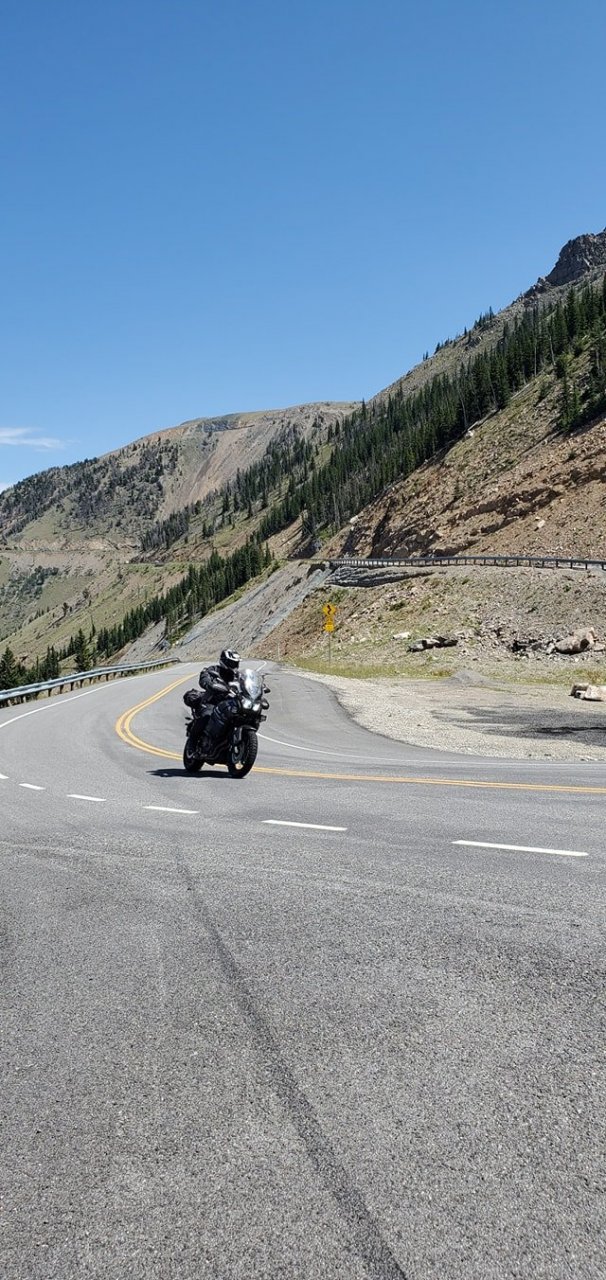 Back to coming down Beartooth Pass; Midway down on the west side is a road, Route 267, that heads to Cody, Wyoming. Freakin' brilliant road - no traffic, smooth surfaces, loads of twisties and a small hole in the ground. Simply gorges....