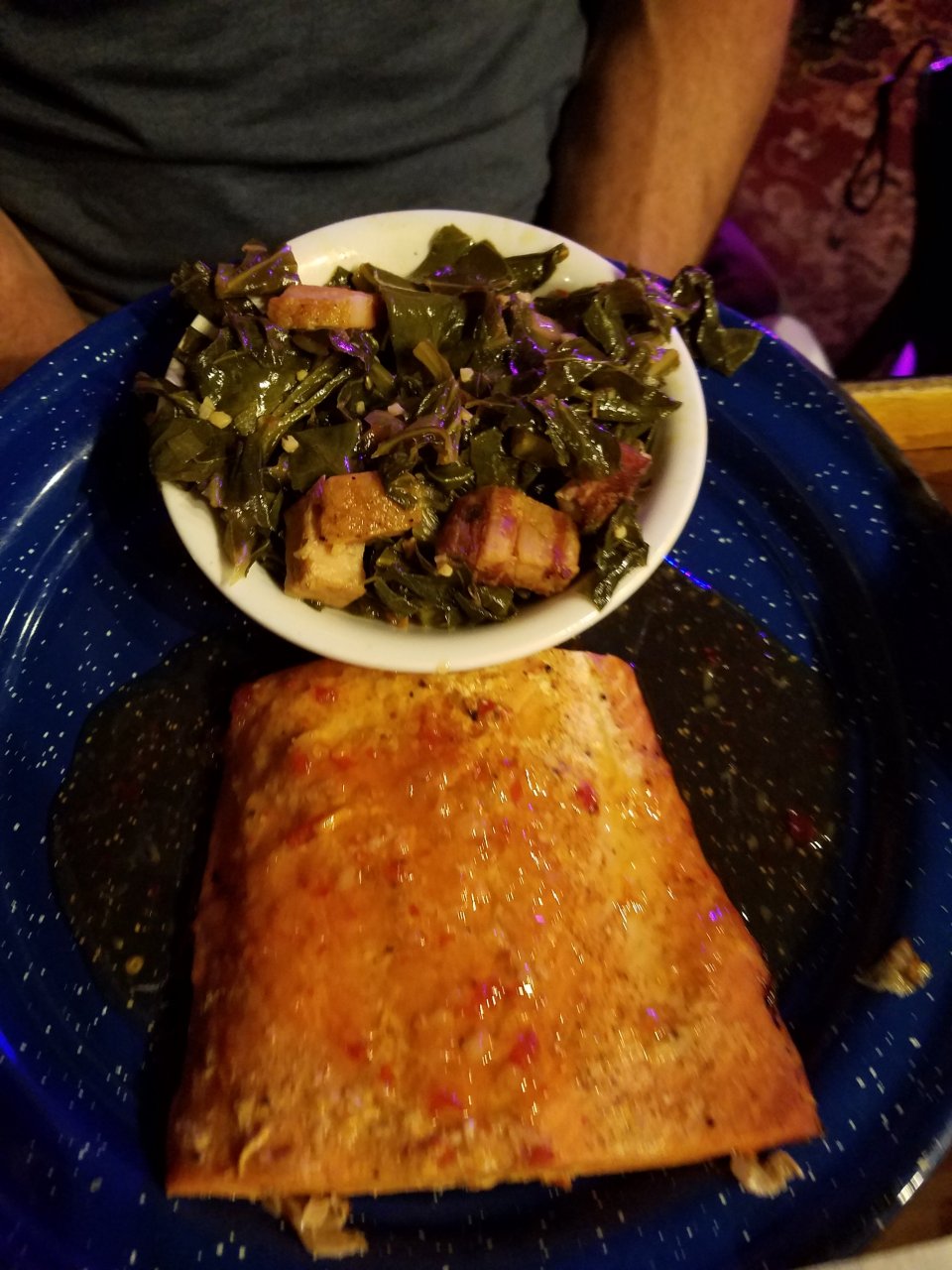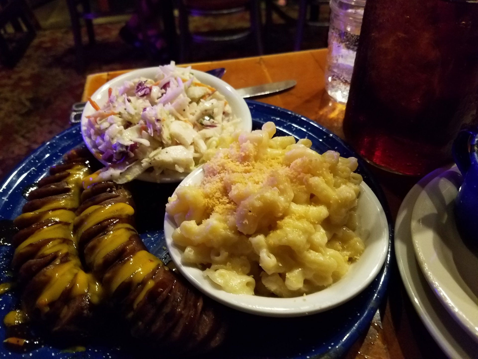 11. Dinners tonight. I had a boring burger, so no pics of fhat. Thesae are: 1 - Elk meat suasages, cole slaw,mac and cheese 2 - grilled salmon steak and collared greens 3 - Pulled pork and mac and cheese