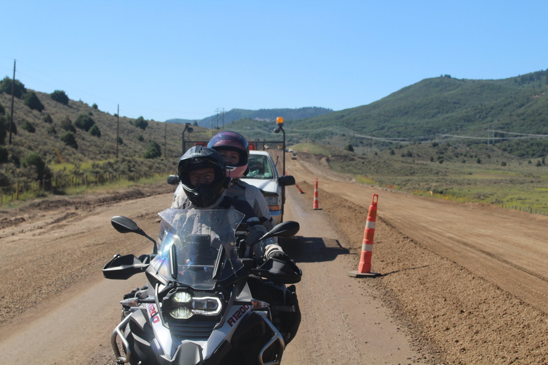 9. Set off on my annual trip to someplace today. Made it as far as Ogden, Utah after riding around 600 miles for the day. Joing me on this trip is my friend Neil aboard hios GS and friends Dave and Debbie on their GS. Left home in 38F degree (4C) temps and arrived in Ogden at 104F(40C). Didn't take a lot of pics today as we were mostly riding through hpt desert landscapes and soem highways. Did get a few pics at a road works - even has an abandoned house!
