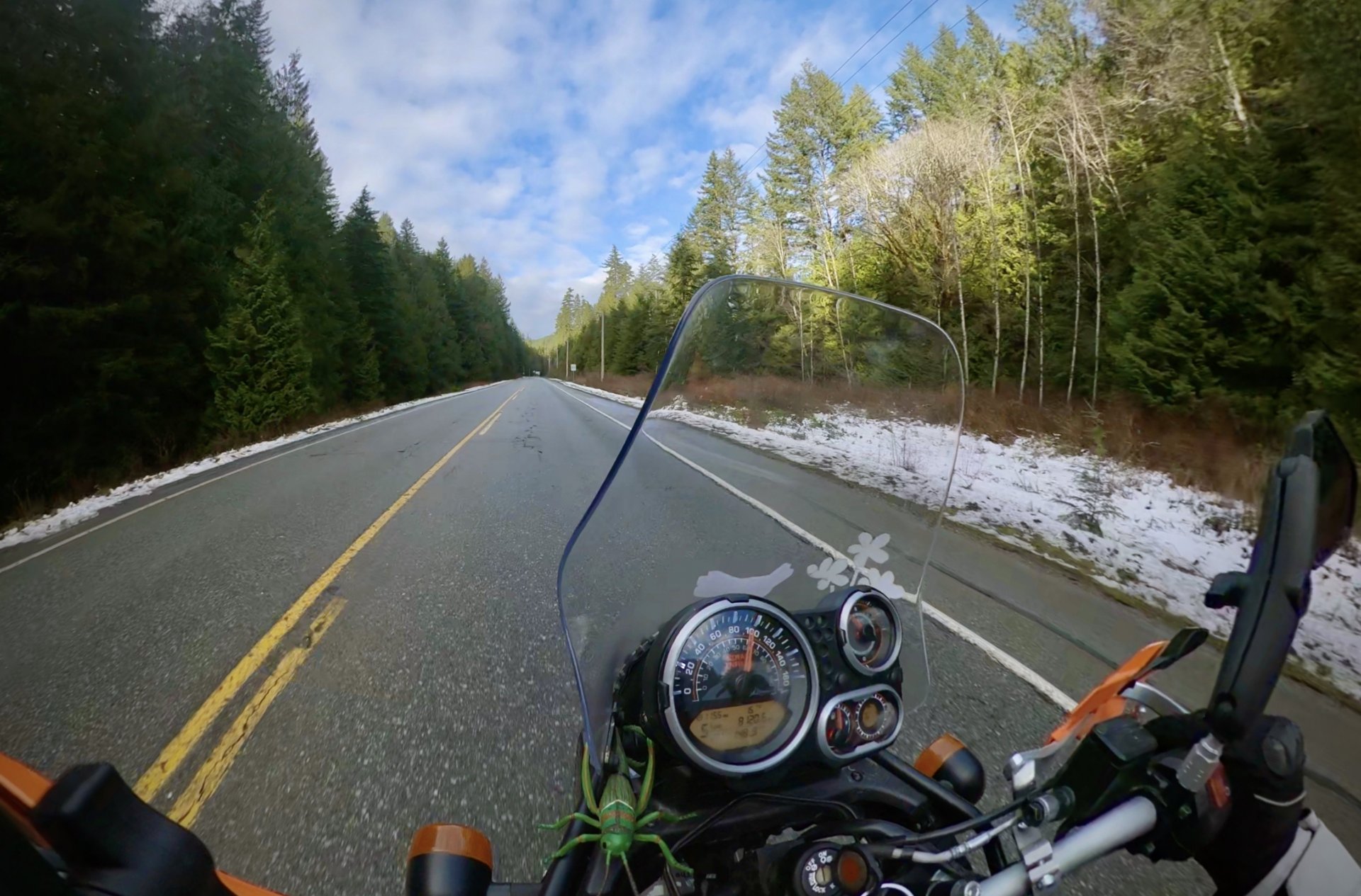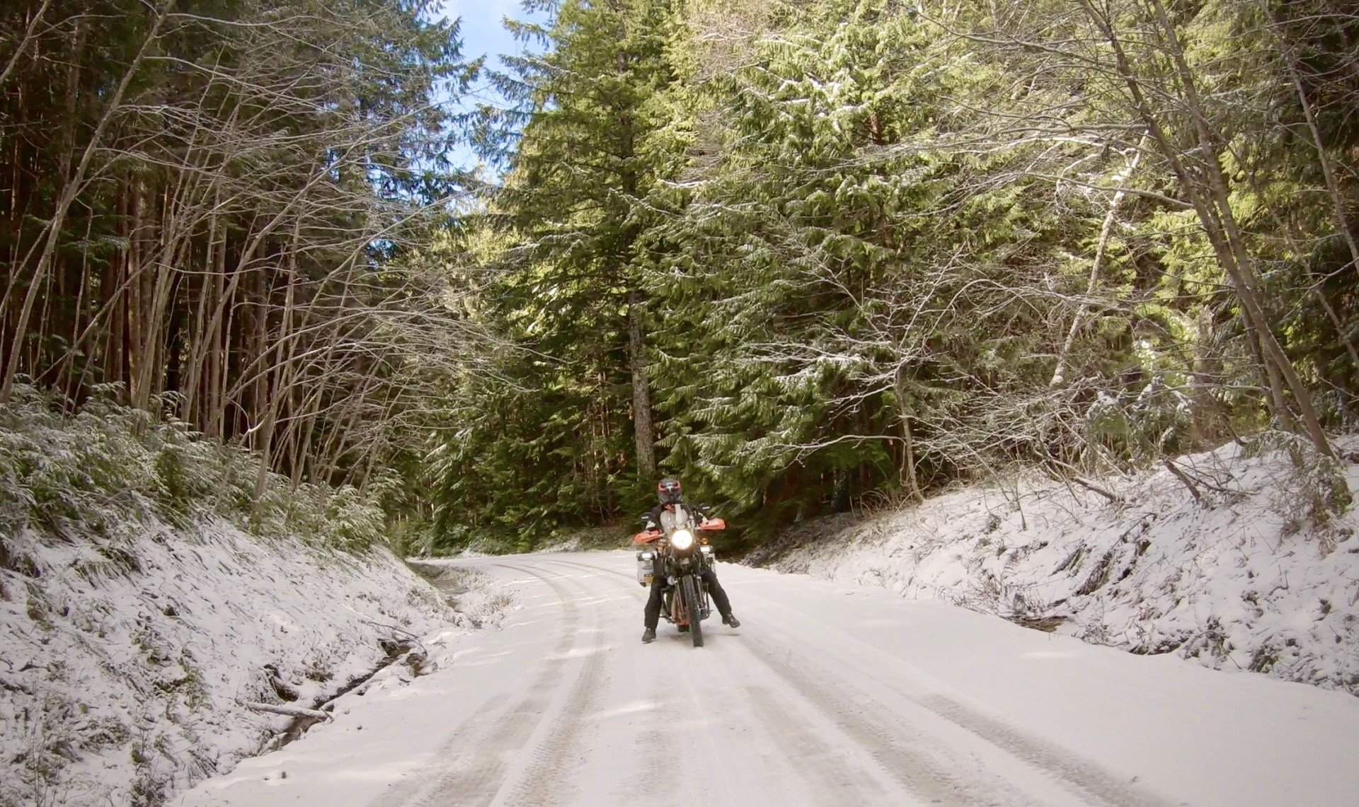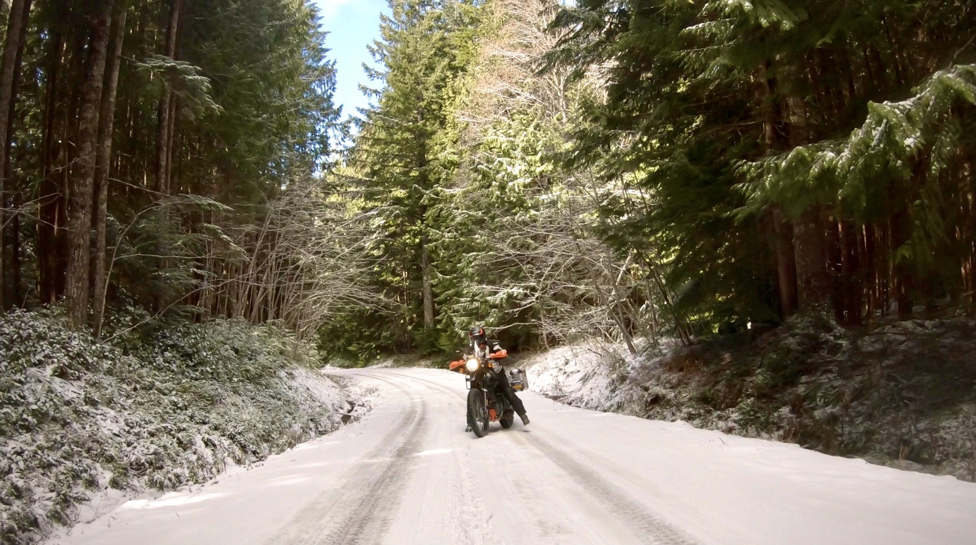 Ride Log April 10, 2021 Mount Elphinstone Provincial Park is located on the beautiful Sunshine Coast in British Columbia, Canada. There are a few gravel roads that travel through the park and offer the locals a great place to adventure into the backcountry and play the day away. We ride there a lot during the summer and fall, but thought we would ride up there this Spring and see where the snow line was at. The tires on our bikes are not meant for snow in any way, so we go as far as we can. After some slip sliding around, we decided to turn around at 666 meters (more like our tires said, GO HOME SILLY ?) . We will try again soon, as it is one of our favourite roads! ? Fun ride and great experience, I even managed to keep the rubber side down. A slipping and a sliding.... The forest did look beautiful with the fresh snow. ?