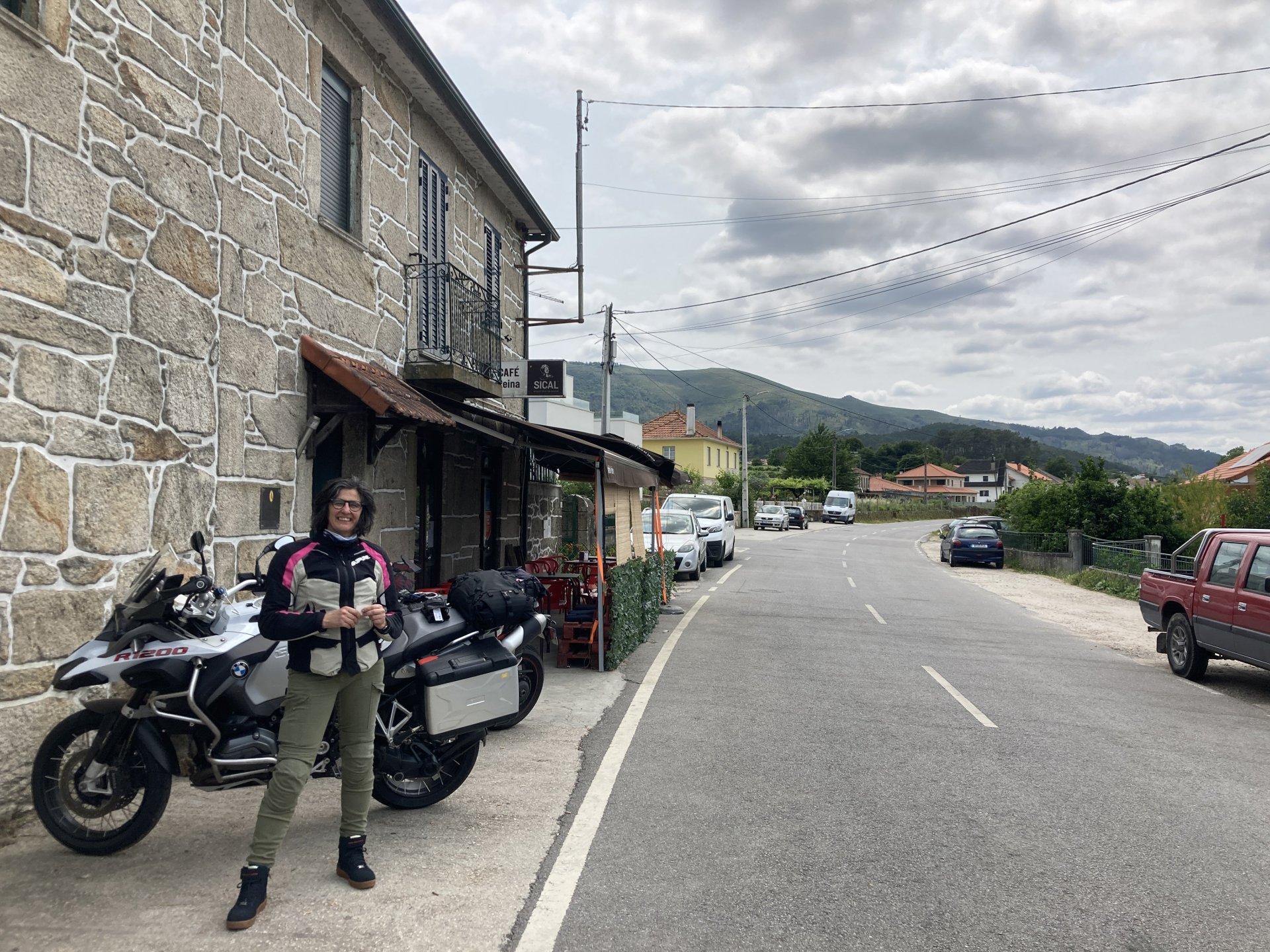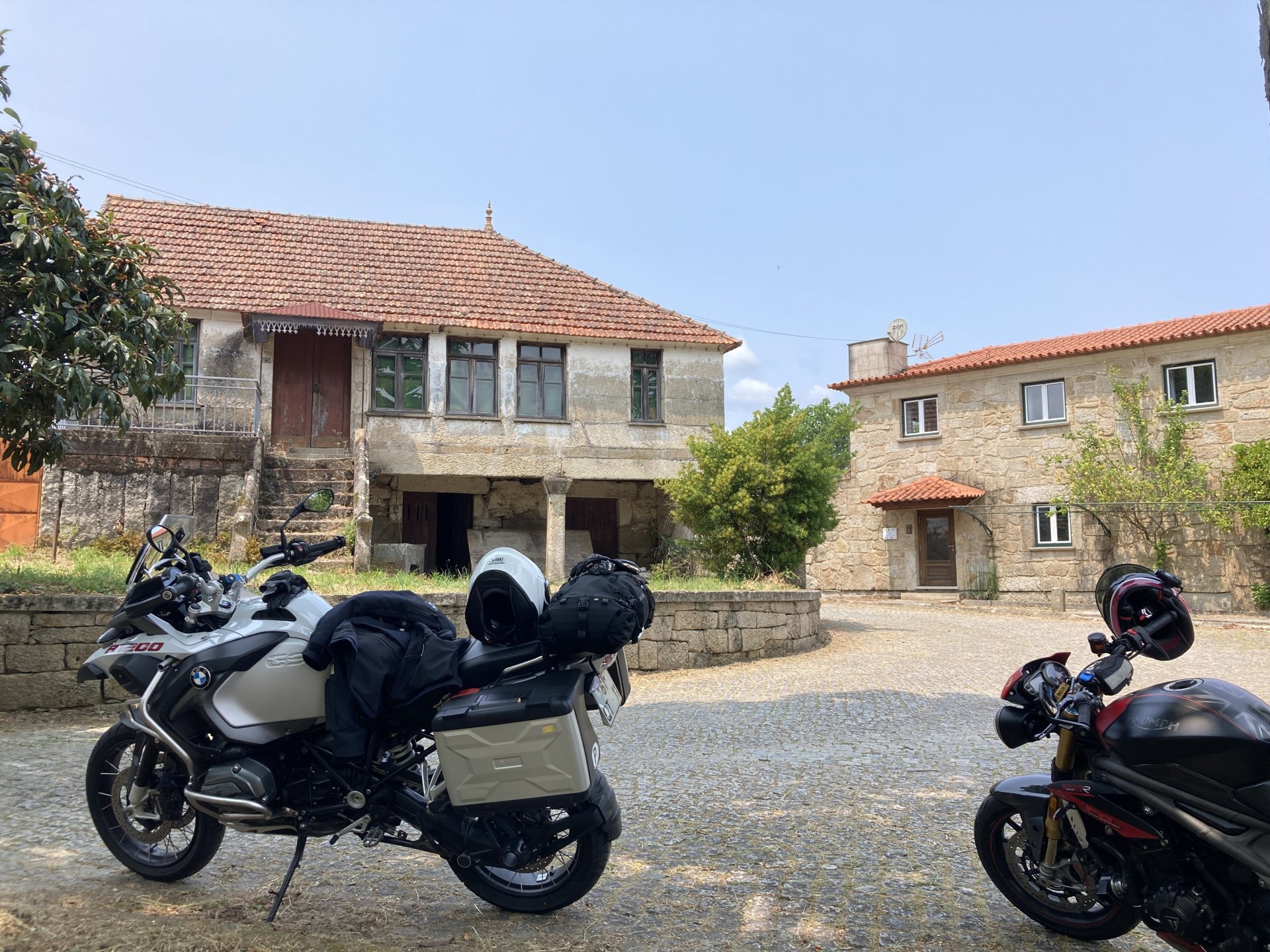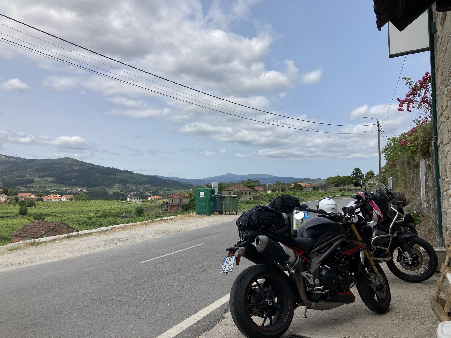 Me and Sofia spent a couple of days in Espinho for my little brother's birthday before going on a ride around the North of Portugal. Having a day with no plans, we went to look at bike dealerships in and around Porto, with a stop for a very typical northern lunch, something Sofia rarely gets to experience since she's rarely in Porto. First, getting her seated on some nice GSs And then the bike I really went there to see, I am going to try and take one for a testride and see what it's like, looks nice in person: And then, a nice lunch of Rojões: The restaurant on the outside, it's a locals' non touristic spot: And then, a stop at Triumph Porto, where I was made to sit on a Tiger, very comfy bike though, and has a 30 liter fuel tank as well: Across the street to that, we have the best dealership of the day, and a bike I really like. Can't see it fitting my motorcycling very well, but it is a nice thing. The next day, we start our tour, heading North straight to Valença, not to be confused with Valencia in Southern Spain. Valença is a small town next to the border of Portugal and Spain in the Minho river, it's got an old part that is inside the fortified walls, which is what we visited. Sofia's grandad was born here, his dad was stationed here in the military, before being sent to WW1. The military lived in houses that no longer exist right around where we parked our bikes. And then took a walk to look around and also to find an espresso. Valença is very well fixed up, very polished and very touristy. Flocks of Spaniards wash over it for visits and meals, it's very pretty but not really my thing. We moved on, now entering a special wine region that is not very well known internationally. Between Monção and Melgaço is a DOP region that grows very special Alvarinho wine, used mostly for Vinho Verde but normal white wine too, it's very nice. The region is very pretty and filled with history. We stopped to check out what looked like a cool abandoned square by the small road we were taking, and came upon a small place with a big historic significance. The little place of Ponte do Mouro, it's where 648 years ago the Duque Lancaster came from England to meet D. João I, to arrange the wedding of Philipa of Lancaster with John I (the first), creating the Windsor Treaty in 1386, which is the oldest alliance between two nations. Big History for such a tiny location. My theory is that they both got heavily drunk on local Alvarinho wine, and drunkenly promised eternal friendship between their countries, but that's just my theory @Sofia is very enthusiastic about History, and I got to hear of how great Philipa was, and how her marriage with D.João I originated the best kings and leaders, and characters in Portuguese history. We rolled off, but this being a tiny region, we stopped 20 minutes later to cool off as the sun was coming out, a little before 3PM, for a cold water and a sip of that local cold wine they talk about. Just a sip, as I don't drink on the bike. We stopped on a cafe just on the road, and this is the sign to the entrance of the farm next door Hey @boboneleg, look, bins! Shortly after, made it to Melgaço, and went to walk around to see the castle and show Sofia around the place. From there we were too far away get to Tras os Montes or Galicia through nice roads, so I hunted around and found a deal for a nice room in Ponte da Barca, which is a nice small town in the heart of the Minho region. I think it's a hidden gem and wanted to show it to Sofia, so we went. Via some nice but easy twisty roads through wild forests and vineyeards, by 18:30 we were there. Great hotel room view, and I do like a deal. The river is just on the other side of the gardens on the previous picture, and we would have plenty of sunlight time to have a little walk around town before dinner, it's a small place. I found a small very old school restaurant for dinner, it's the building on the right in the next picture. Not much choice anyway as tuesday is the day when most restaurants close here. View from the restaurant. We had hake filets cooked like a portuguese grandmother would. It was a very nice meal, watered with local vinho verde, I loved it. And then a short stroll across the bridge, as night arrived. In the morning, it was raining, so we took our time to get up and lazily walk up the street for a coffee. This is by far the wettest region of Portugal, but I was determined to leave late and chase the rain instead of riding under it. Only after 11 did we roll out, by midday it was already properly hot under the rain stuff so we stopped to take all that off and visit Lindoso Castle. We had avoided the rain, great success! We left Lindoso, and minutes later crossed into Galicia, a couple of hours later through nice flowing roads that much pleased Sofia in her Speed Triple, we stopped at Allariz. In Allariz, at 15:00, there was not a place to eat a snack, only two proper restaurants for proper sit down meals. We didn't vibe with the place, so had a water and carried on, I booked a table at my favourite restaurant near Bragança and headed there. Almost two hours later, we're entering back into Portugal: As always, a great dinner was had near Bragança, I didn't take pictures. The next day we'd roll south and onto Serra da Estrela, I'll continue later.