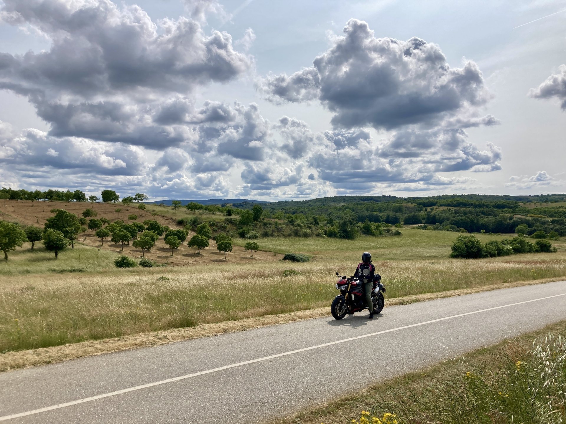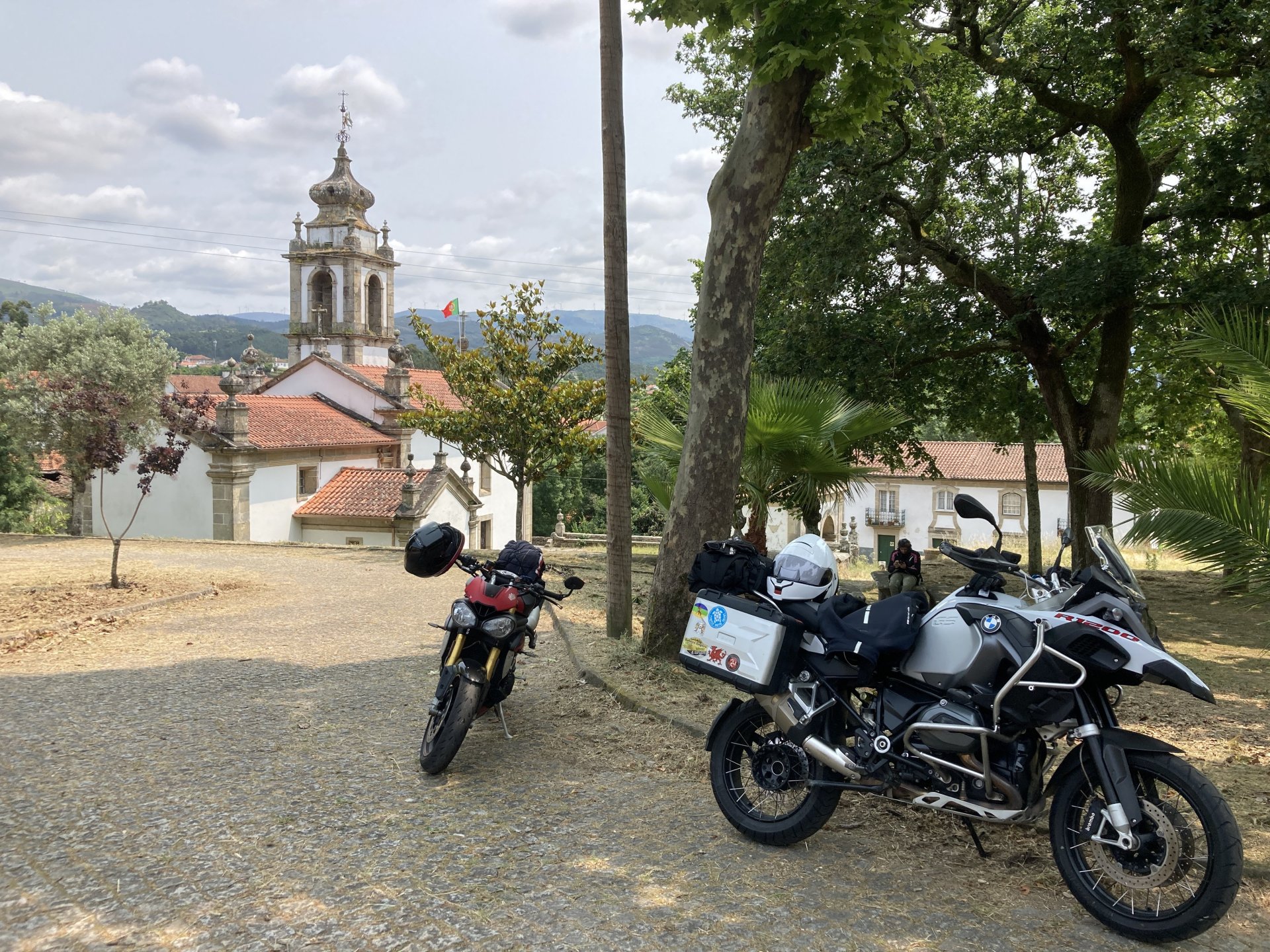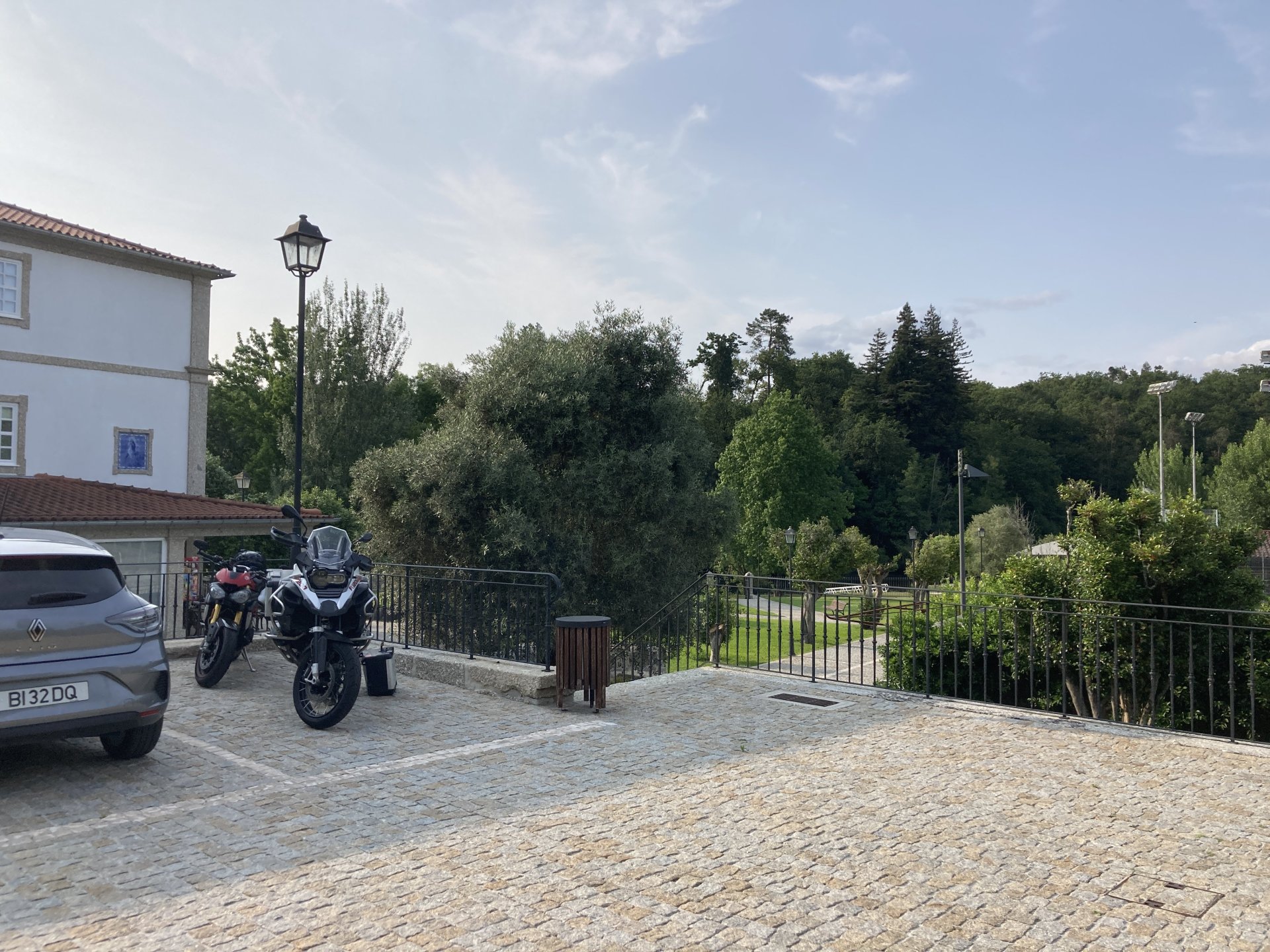 Me and Sofia spent a couple of days in Espinho for my little brother's birthday before going on a ride around the North of Portugal. Having a day with no plans, we went to look at bike dealerships in and around Porto, with a stop for a very typical northern lunch, something Sofia rarely gets to experience since she's rarely in Porto. First, getting her seated on some nice GSs And then the bike I really went there to see, I am going to try and take one for a testride and see what it's like, looks nice in person: And then, a nice lunch of Rojões: The restaurant on the outside, it's a locals' non touristic spot: And then, a stop at Triumph Porto, where I was made to sit on a Tiger, very comfy bike though, and has a 30 liter fuel tank as well: Across the street to that, we have the best dealership of the day, and a bike I really like. Can't see it fitting my motorcycling very well, but it is a nice thing. The next day, we start our tour, heading North straight to Valença, not to be confused with Valencia in Southern Spain. Valença is a small town next to the border of Portugal and Spain in the Minho river, it's got an old part that is inside the fortified walls, which is what we visited. Sofia's grandad was born here, his dad was stationed here in the military, before being sent to WW1. The military lived in houses that no longer exist right around where we parked our bikes. And then took a walk to look around and also to find an espresso. Valença is very well fixed up, very polished and very touristy. Flocks of Spaniards wash over it for visits and meals, it's very pretty but not really my thing. We moved on, now entering a special wine region that is not very well known internationally. Between Monção and Melgaço is a DOP region that grows very special Alvarinho wine, used mostly for Vinho Verde but normal white wine too, it's very nice. The region is very pretty and filled with history. We stopped to check out what looked like a cool abandoned square by the small road we were taking, and came upon a small place with a big historic significance. The little place of Ponte do Mouro, it's where 648 years ago the Duque Lancaster came from England to meet D. João I, to arrange the wedding of Philipa of Lancaster with John I (the first), creating the Windsor Treaty in 1386, which is the oldest alliance between two nations. Big History for such a tiny location. My theory is that they both got heavily drunk on local Alvarinho wine, and drunkenly promised eternal friendship between their countries, but that's just my theory @Sofia is very enthusiastic about History, and I got to hear of how great Philipa was, and how her marriage with D.João I originated the best kings and leaders, and characters in Portuguese history. We rolled off, but this being a tiny region, we stopped 20 minutes later to cool off as the sun was coming out, a little before 3PM, for a cold water and a sip of that local cold wine they talk about. Just a sip, as I don't drink on the bike. We stopped on a cafe just on the road, and this is the sign to the entrance of the farm next door Hey @boboneleg, look, bins! Shortly after, made it to Melgaço, and went to walk around to see the castle and show Sofia around the place. From there we were too far away get to Tras os Montes or Galicia through nice roads, so I hunted around and found a deal for a nice room in Ponte da Barca, which is a nice small town in the heart of the Minho region. I think it's a hidden gem and wanted to show it to Sofia, so we went. Via some nice but easy twisty roads through wild forests and vineyeards, by 18:30 we were there. Great hotel room view, and I do like a deal. The river is just on the other side of the gardens on the previous picture, and we would have plenty of sunlight time to have a little walk around town before dinner, it's a small place. I found a small very old school restaurant for dinner, it's the building on the right in the next picture. Not much choice anyway as tuesday is the day when most restaurants close here. View from the restaurant. We had hake filets cooked like a portuguese grandmother would. It was a very nice meal, watered with local vinho verde, I loved it. And then a short stroll across the bridge, as night arrived. In the morning, it was raining, so we took our time to get up and lazily walk up the street for a coffee. This is by far the wettest region of Portugal, but I was determined to leave late and chase the rain instead of riding under it. Only after 11 did we roll out, by midday it was already properly hot under the rain stuff so we stopped to take all that off and visit Lindoso Castle. We had avoided the rain, great success! We left Lindoso, and minutes later crossed into Galicia, a couple of hours later through nice flowing roads that much pleased Sofia in her Speed Triple, we stopped at Allariz. In Allariz, at 15:00, there was not a place to eat a snack, only two proper restaurants for proper sit down meals. We didn't vibe with the place, so had a water and carried on, I booked a table at my favourite restaurant near Bragança and headed there. Almost two hours later, we're entering back into Portugal: As always, a great dinner was had near Bragança, I didn't take pictures. The next day we'd roll south and onto Serra da Estrela, I'll continue later.