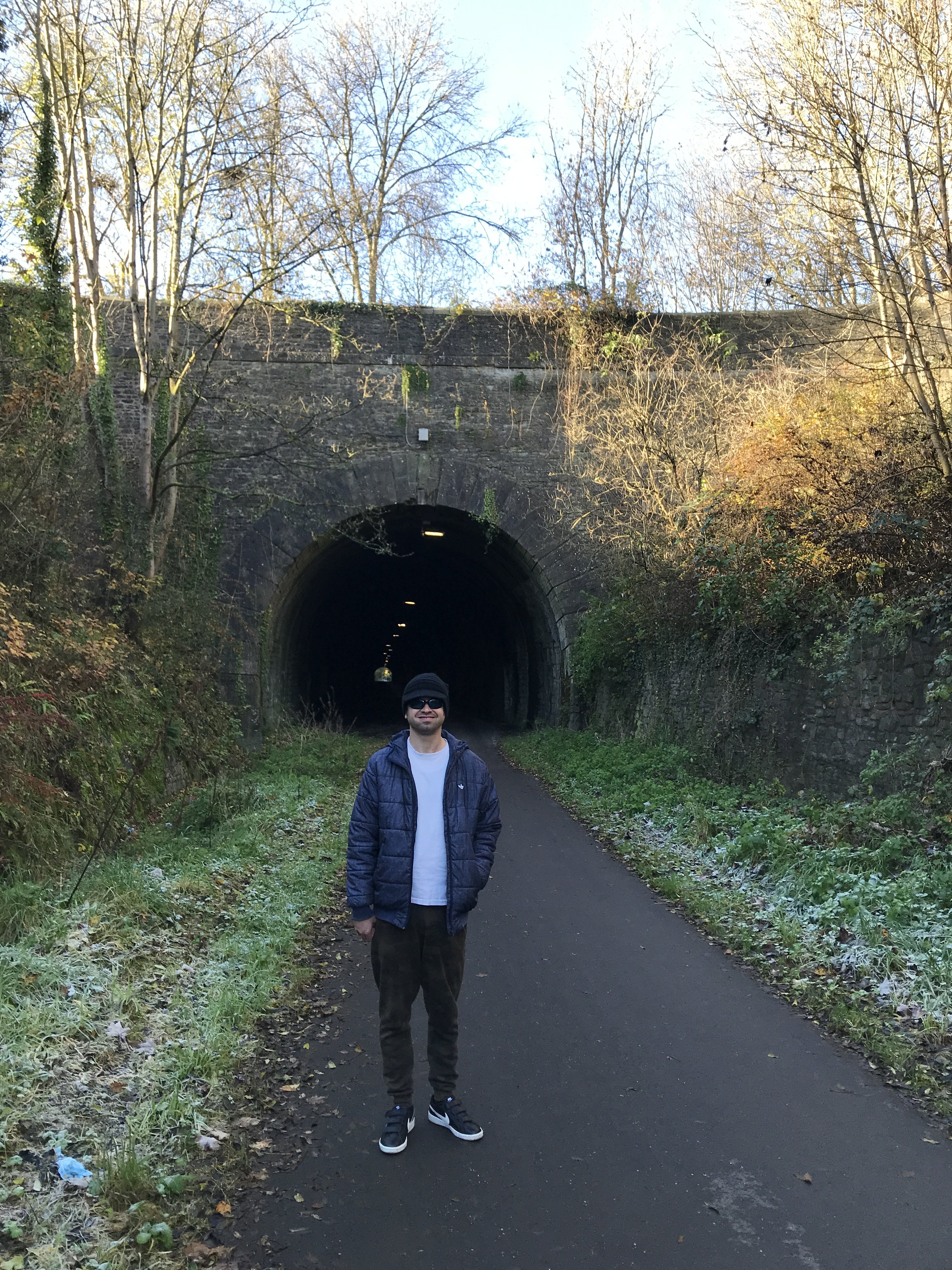 It was a glorious morning today so Paolo and I set off for a walk along the old Midland line that used to run from Bath to Bristol.  We got on it at Staple Hill as Paolo had never walked through the tunnel before , it was a frosty start but the sunshine was great .